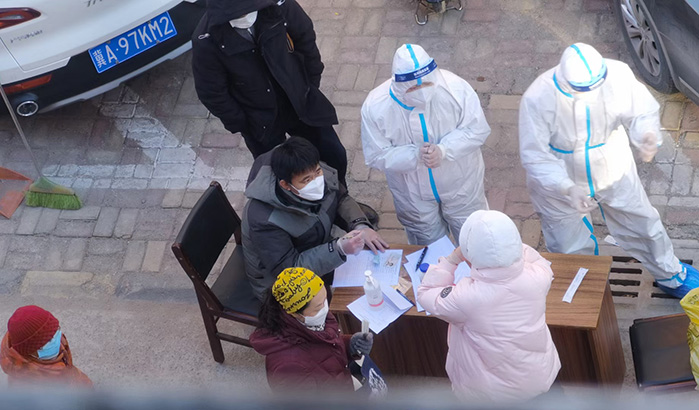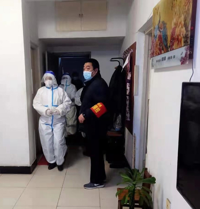張占柱同志帶領(lǐng)醫(yī)護(hù)人員上門為老弱病幼進(jìn)行核酸檢測(cè)