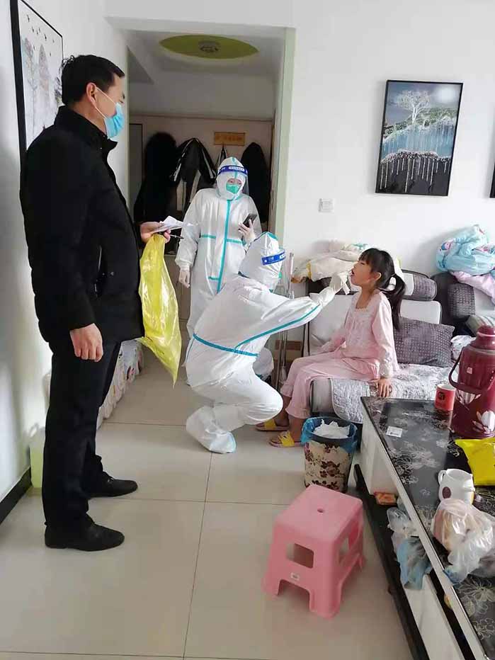 ——有序采樣,不落一人。環(huán)境工程公司黨支部李維欣同志和妻子齊上陣,在社區(qū)分配到志愿服務(wù)任務(wù)時挺身而出,義無反顧地穿梭在樓宇和人群中。他們跑上跑下,挨門挨戶登記,生怕漏掉一個人,邀請鄰居們?nèi)肴?,核酸檢測前又挨個通知大家按照時間節(jié)點下樓排隊檢測,采樣期間主動拉起警戒線,毅然做好秩序維護(hù),當(dāng)好小區(qū)“保障員”,確保不扎堆,不排長隊,銜接合理、有序高效。寒冷的冬天里他們戴著憋悶的口罩,氣喘吁吁,嚴(yán)實的棉服卻冒著“熱氣”,時而不時用衣袖擦拭額頭的汗水。面對社區(qū)交給的任務(wù),他們毫不退縮,他們的選擇就是沖鋒在前、逆行而上,確保社區(qū)有序采樣,不落一人。