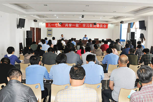 5月9日,召開了隊部全體黨員參加的“”兩學一做“學習教育動員大會,會議由黨委書記劉寧主持,啟動全隊學習教育活動。會上劉寧書記做重要講話,政工部主任劉強宣讀了《五一七隊兩學一做實施方案》。會議要求班子成員在所在黨支部開展黨課教育活動。黨課要緊密聯(lián)系生產(chǎn)經(jīng)營的實際,深入思考存在的問題,剖析存在問題的根源,領導班子成員的黨課從“兩學一做”的重大意義和豐富內(nèi)涵、落實兩學一做要求,并結(jié)合單位生產(chǎn)經(jīng)營工作面臨的問題進行講解。講黨課活動要使職工提高對教育活動重要性和必要性的認識,對院隊面臨的實際困難和問題進一步深化認識,堅定通過發(fā)展解決困難和問題的決心。